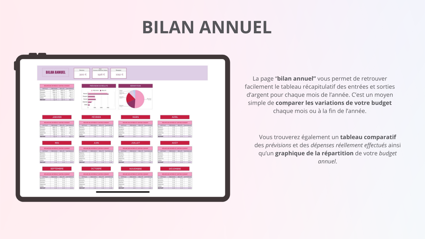 Ce modèle a été conçu pour vous aider à gérer vos revenus, vos dépenses, vos économies et vos dettes, tout en vous offrant une vue d'ensemble claire de votre budget.